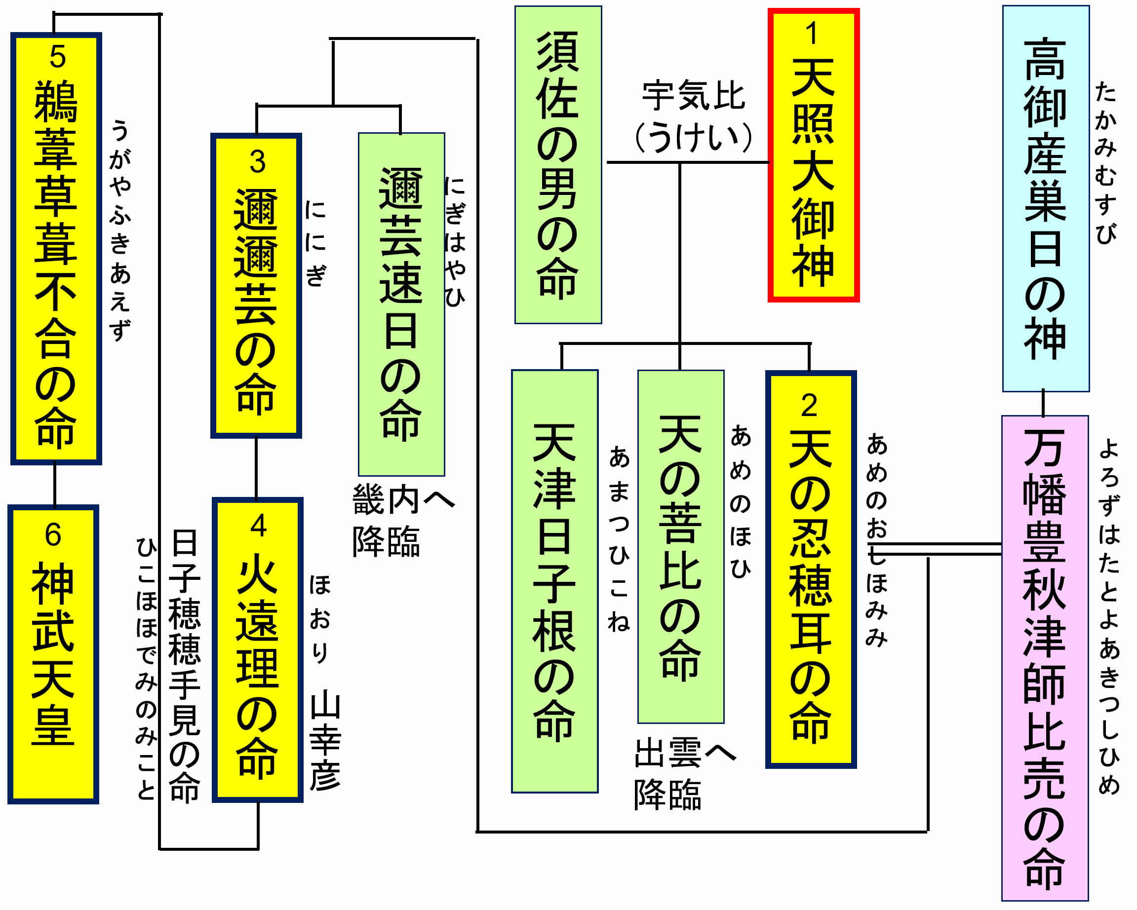 ①天之忍穂耳の命(あめのおしほみみ):天孫直系