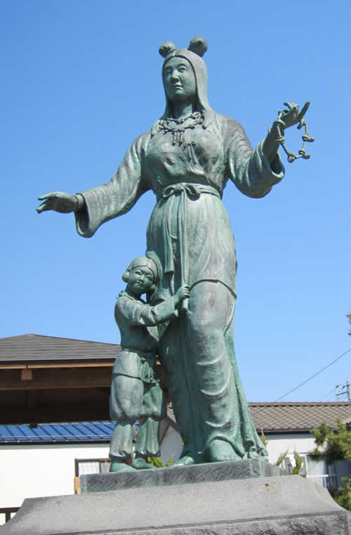 沼河比売の銅像(糸魚川駅近く)[筆者撮影]