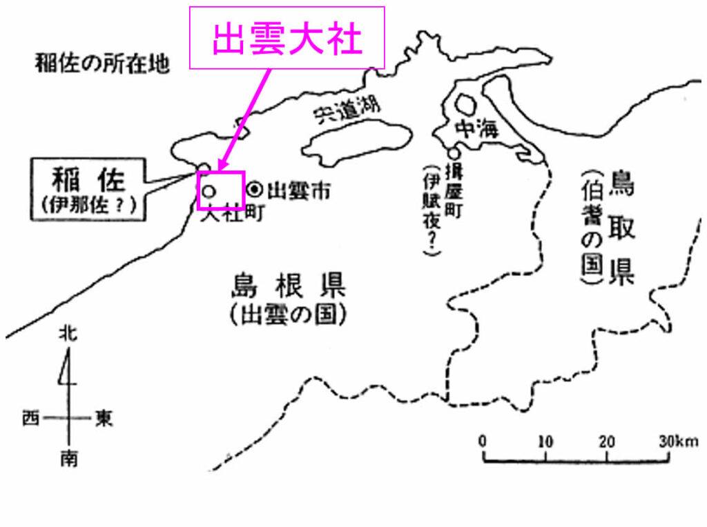 ①出雲大社、須賀、伊賦夜坂(いふやさか) 、鳥上(とりかみ)など古事記に関係する地名の近くに、弥生時代の遺跡が多くある。