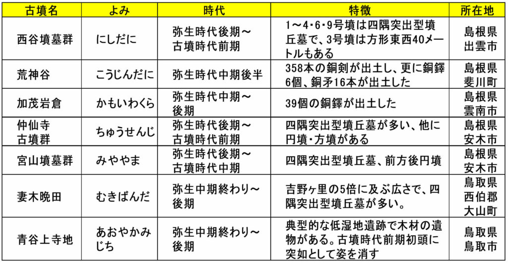 山陰の主な遺跡