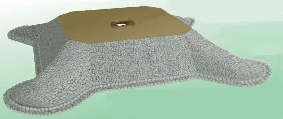 ・普通一辺6~25mほどの方形にして、周囲に1~2mの溝を掘り、墳丘は0.5m程度に盛り上げる。