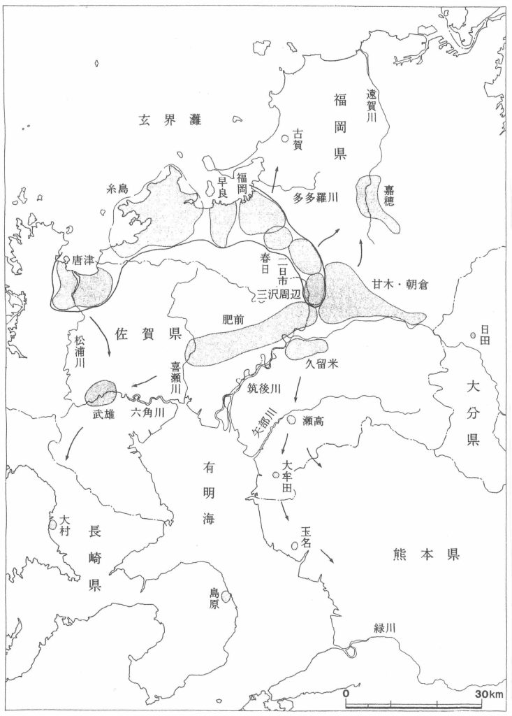 ・那珂川と御笠川とに挟まれた地域が奴国の地域である須玖岡本遺跡(春日市)が中心となる。