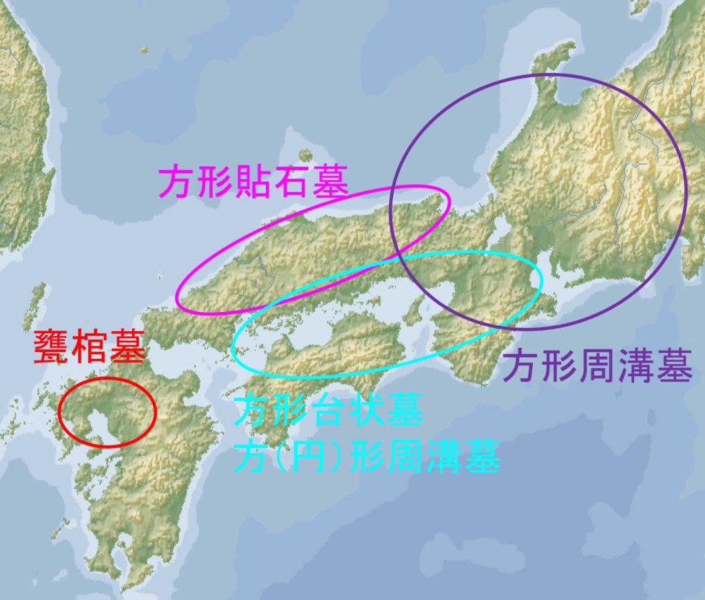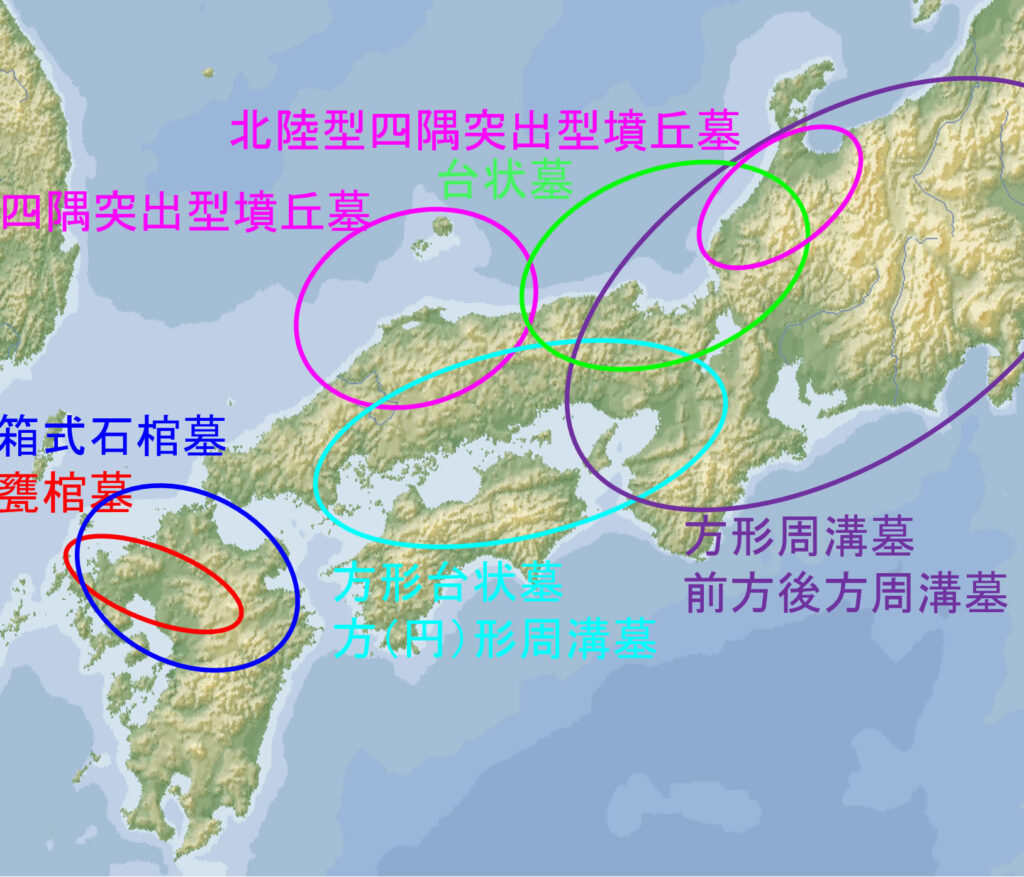 ・弥生後期は各地方は独自の墓制であったのが、古墳時代になり前方後円墳に統一されていく。