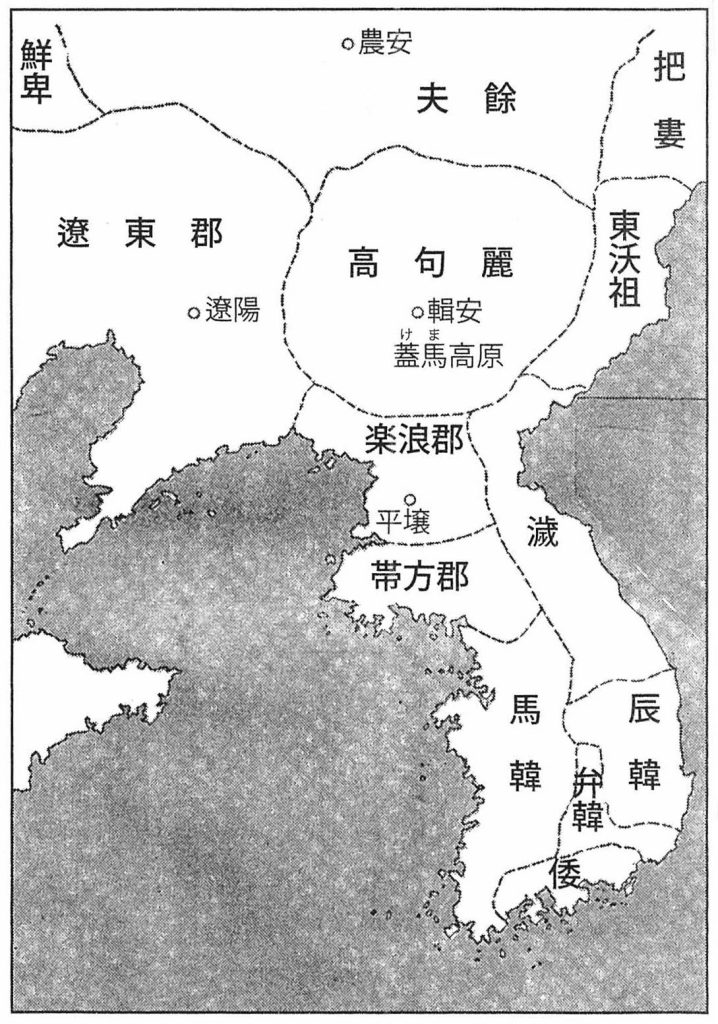 ・一方朝鮮半島では、前漢の武帝が楽浪、真番、臨屯、玄菟の四郡が設置されたが、その後、真番、臨屯、玄菟が廃止され楽浪のみとなった、漢から独立した公孫氏が、この楽浪郡の南半分を割き、その周辺を加えて帯方郡を設置した。