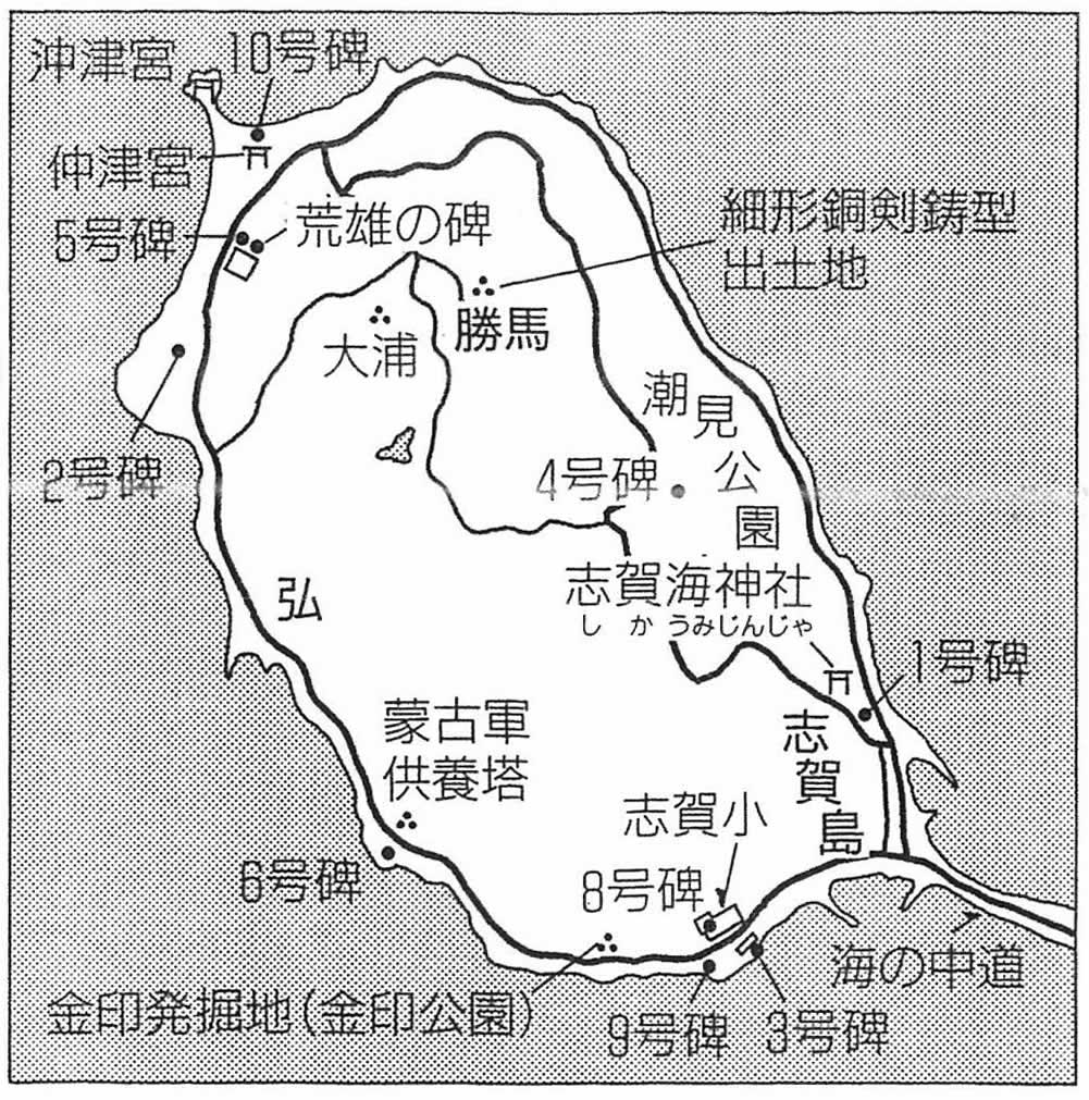 ・この金印が志賀島(しかのしま)(現、福岡県福岡市東区志賀島叶が崎)で江戸時代の1784年(天明4)に発見された。