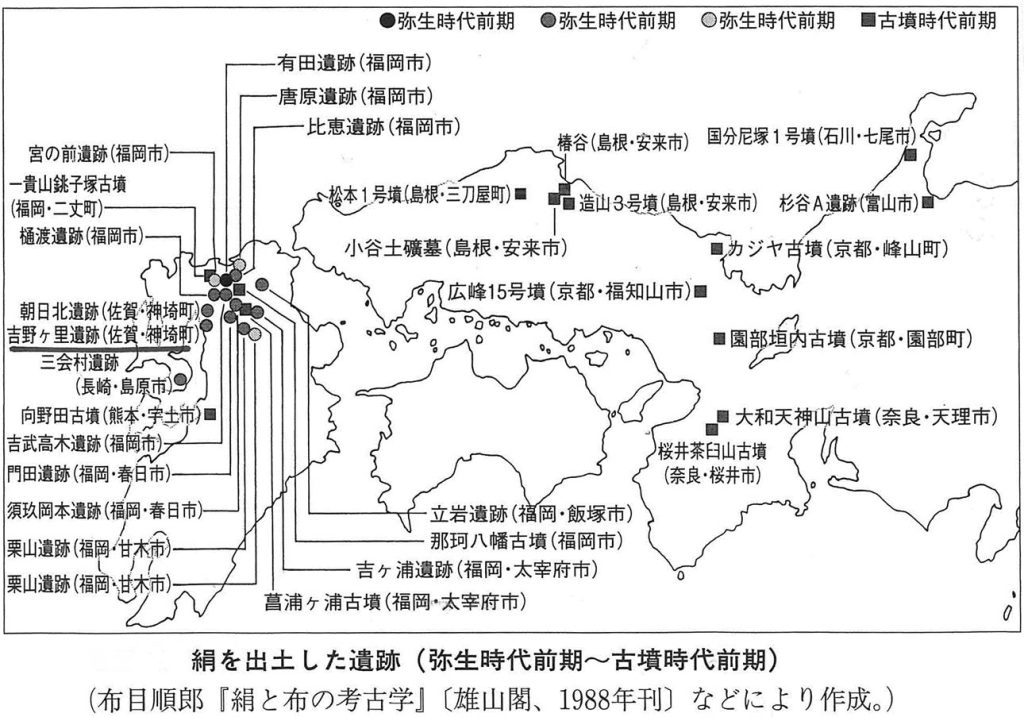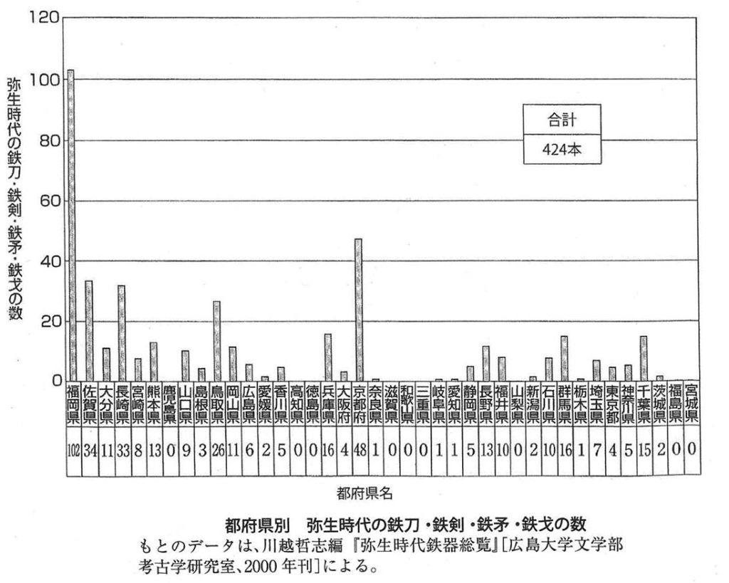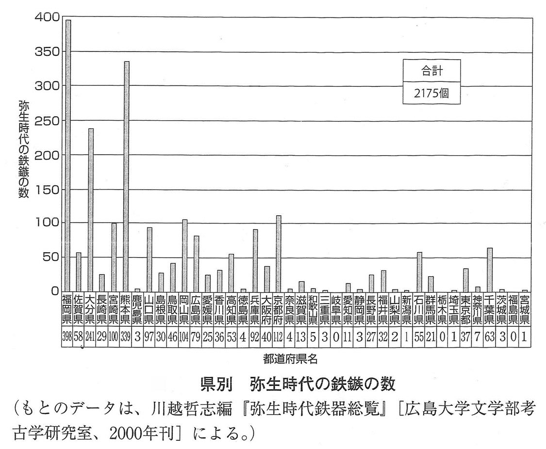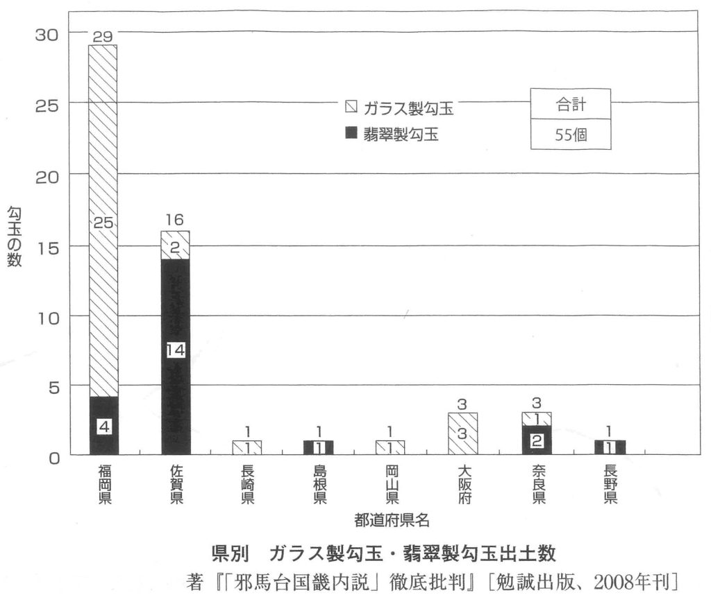 ・『魏志倭人伝』には、兵器には矛、・・・・、鉄鏃を使うとあり、養蚕し、絹の糸や布、白珠などを献じたとある。邪馬台国に鉄の矛や鏃、絹、勾玉があったと考えられる。これらは、北九州からの出土が圧倒的に多い。