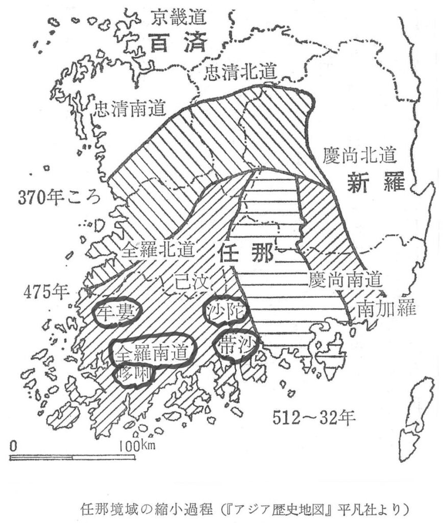 ・『日本書紀』欽明天皇13年(552年)の5月に「百済、加羅、安羅は高麗と新羅と連合して臣の国と任那を滅ぼそうとしていると奏上した。」とある。