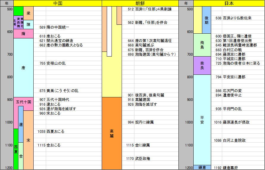 6世紀末の東アジアの年表