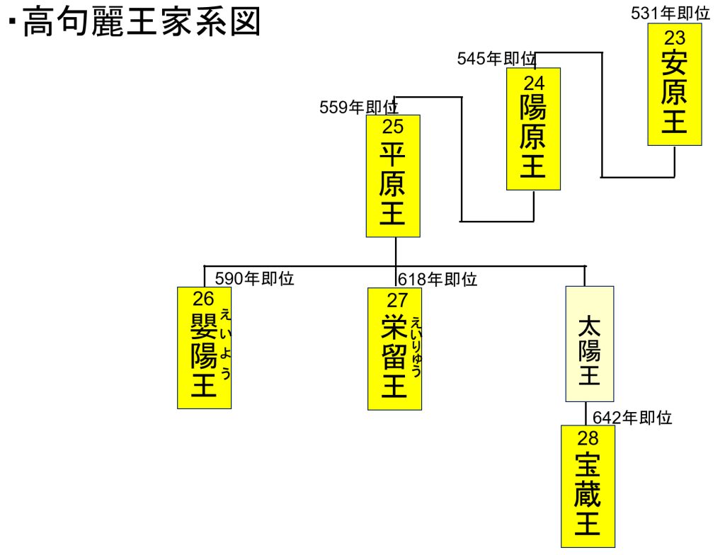 ・ 642年:宝蔵王(栄留王の弟の太陽王の子)は栄留王を弑逆した淵蓋蘇文(えんがいそぶん)によって王位につけられたので、王としての実権は持っていなかった。