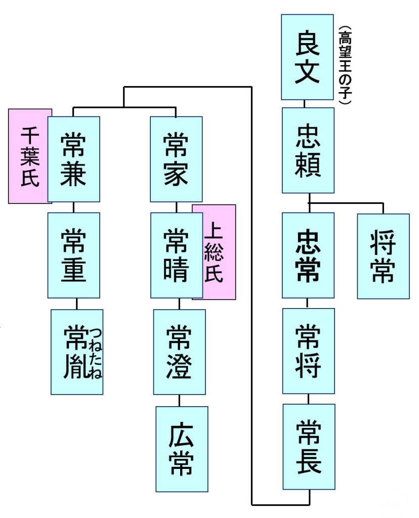 ・坂東八平氏は高望王の子とされる平良文を祖とし、忠常の系譜である。