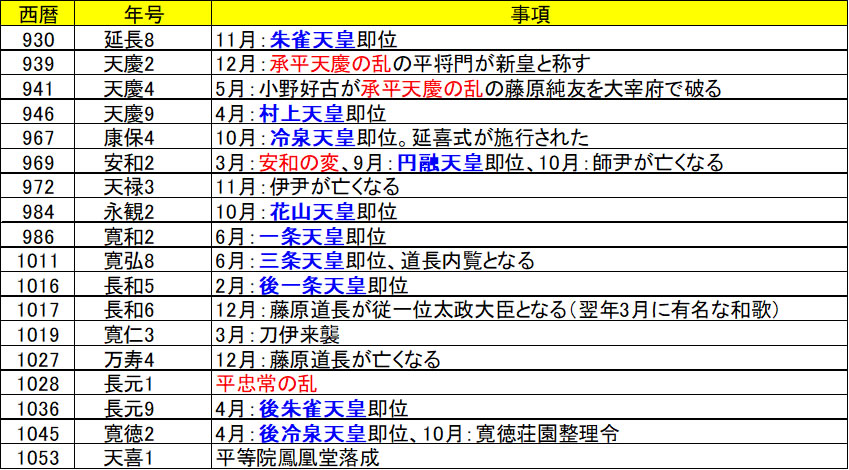 ・武蔵権守の興世(おきよ)王と介の源経基(つねもと)が、武蔵国の足立郡司武蔵武芝(たけしば)と争いになる。この地では正式な国司が到着するまで、各郡に入らない慣例があったが、新たに赴任した、権守の興世王が強引に兵をつれて入り、逃げた武芝の家の資材を奪ったことが、原因だった。