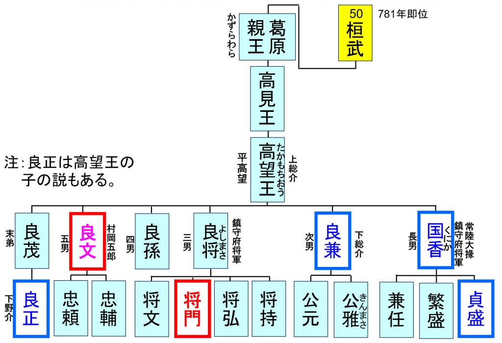 ・承平の乱で、側室の子の良文は国香、良兼に従わず、甥の将門に加担したとの説もあるが、定かではない。