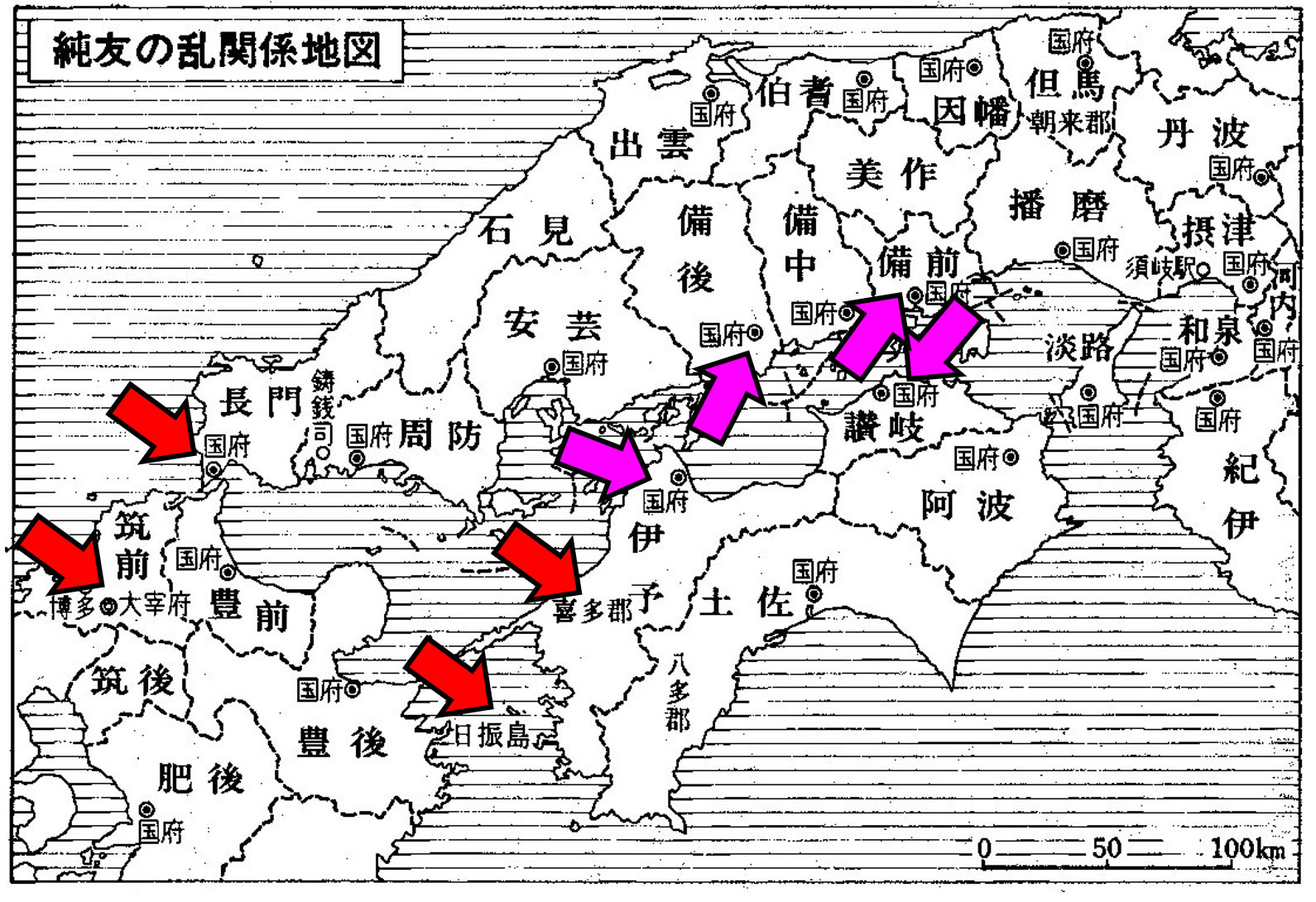 ・936年(承平6年)、伊予国の日振島を根拠としてた海賊が1000余艘の船を従えて、物品を盗んでいると報告されている。